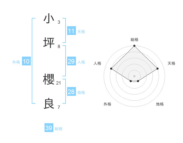 小坪 櫻良さんを姓名の画数から五運を鑑定
