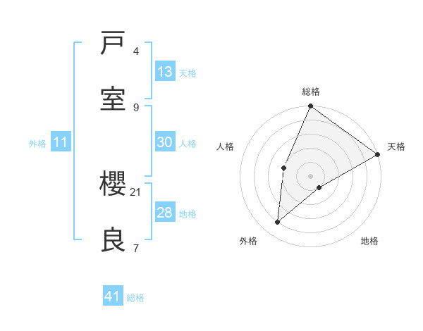 戸室 櫻良さんを姓名の画数から五運を鑑定