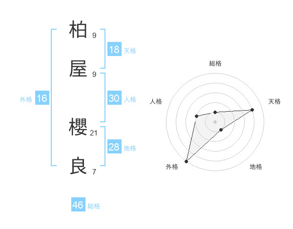 柏屋 櫻良さんの総格は46画の1点!