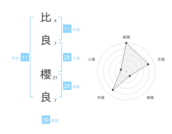 比良 櫻良さんの天格は11画の4点!