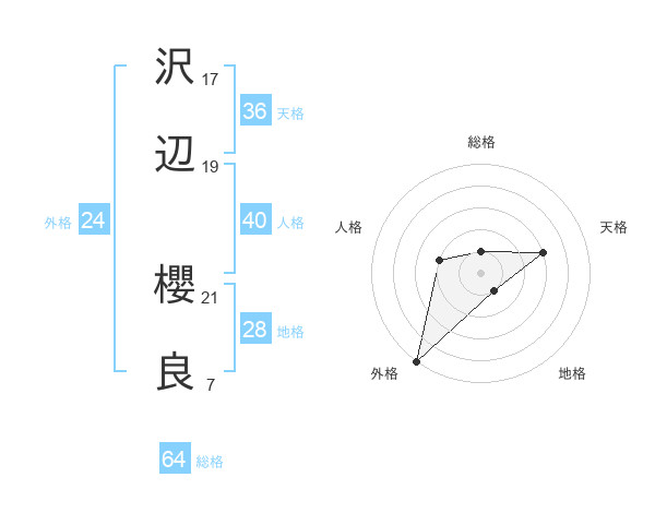 沢辺 櫻良さんの総格は64画の1点!