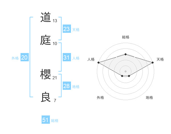 道庭 櫻良さんの総格は51画の3点!