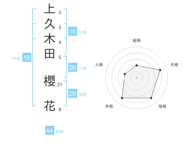上久木田 櫻花さんを姓名の画数から五運を鑑定