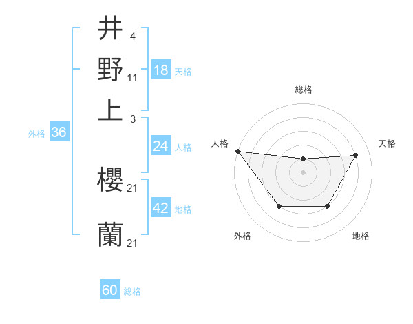 井野上 櫻蘭さんの総格は60画の1点!