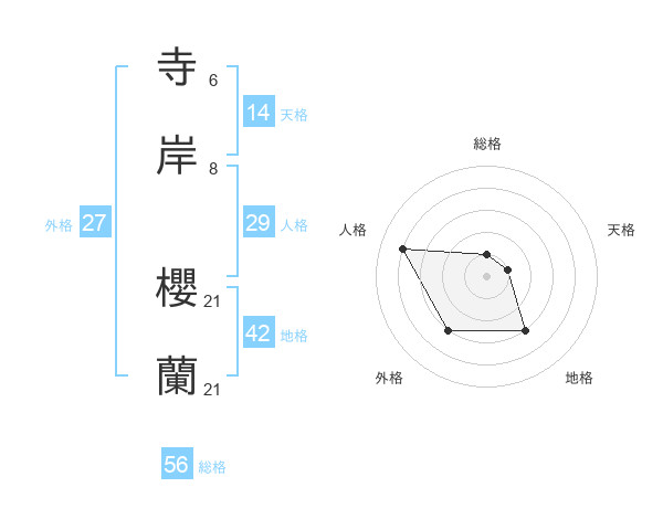 寺岸 櫻蘭さんの総格は56画の1点!