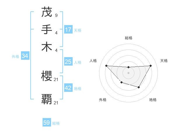 茂手木 櫻覇さんを姓名の画数から五運を鑑定