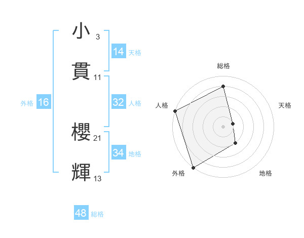小貫 櫻輝さんを姓名の画数から五運を鑑定