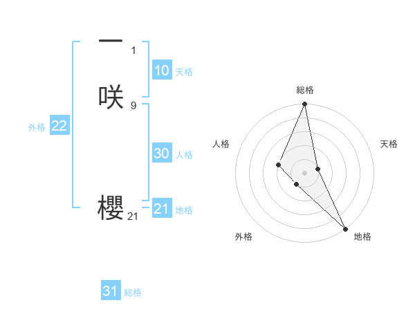 一咲 櫻さんを姓名の画数から五運を鑑定