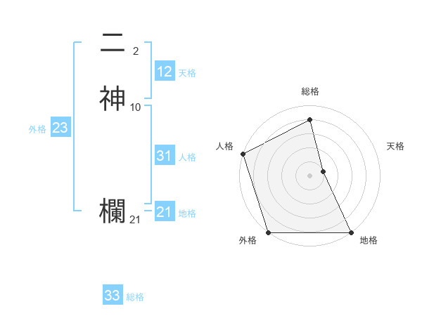 二神 欄さんの総格は33画の4点!