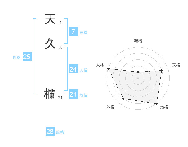 天久 欄さんの外格は25画の4点!