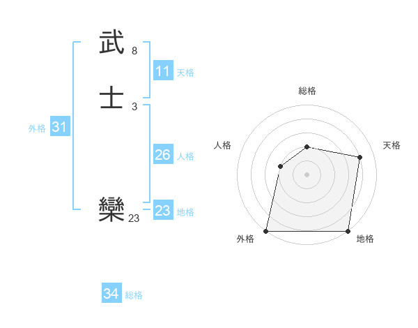 武士 欒さんの総格は34画の2点!