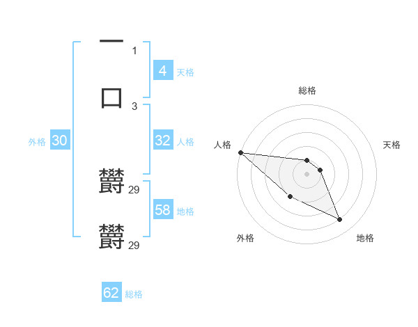 一口 欝欝さんの地格は58画の4点!