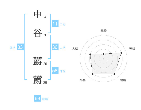 中谷 欝欝さんの天格は11画の4点!