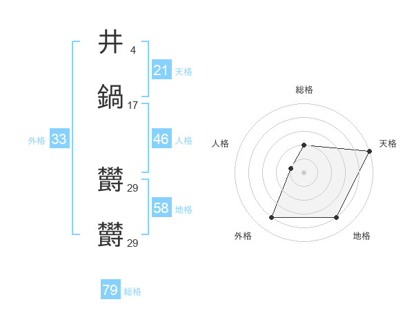 井鍋 欝欝さんの総格は79画の2点!