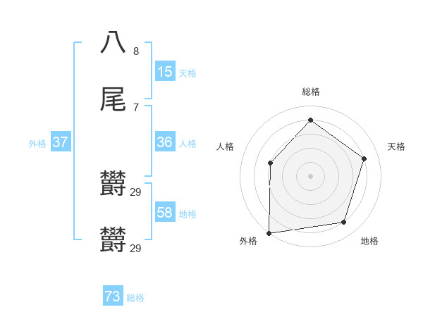 八尾 欝欝さんの総格は73画の4点!