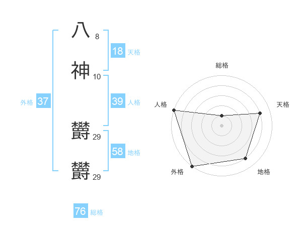 八神 欝欝さんを姓名の画数から五運を鑑定
