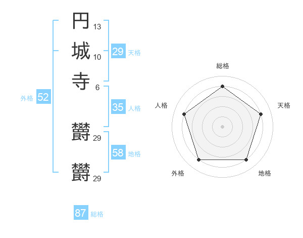 円城寺 欝欝さんを姓名の画数から五運を鑑定