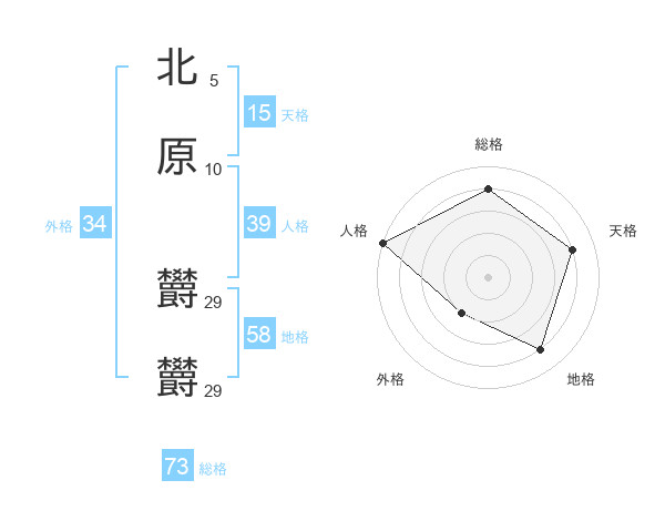 北原 欝欝さんの総格は73画の4点!