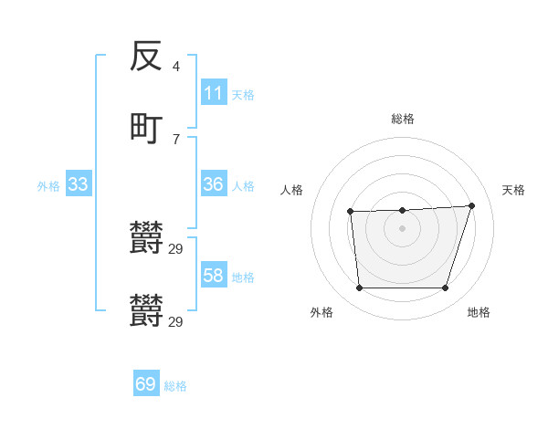 反町 欝欝さんを姓名の画数から五運を鑑定