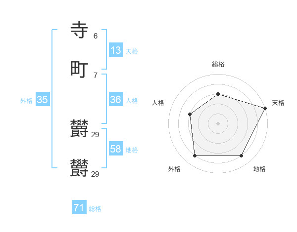 寺町 欝欝さんを姓名の画数から五運を鑑定