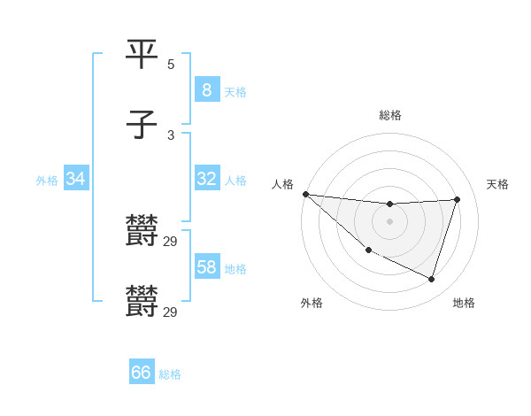 平子 欝欝さんの天格は8画の4点!