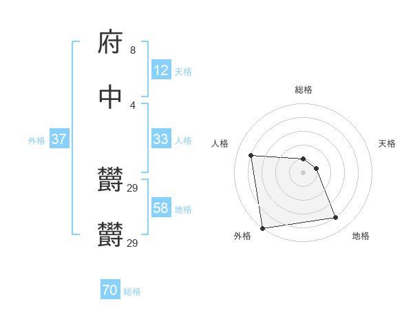 府中 欝欝さんの地格は58画の4点!