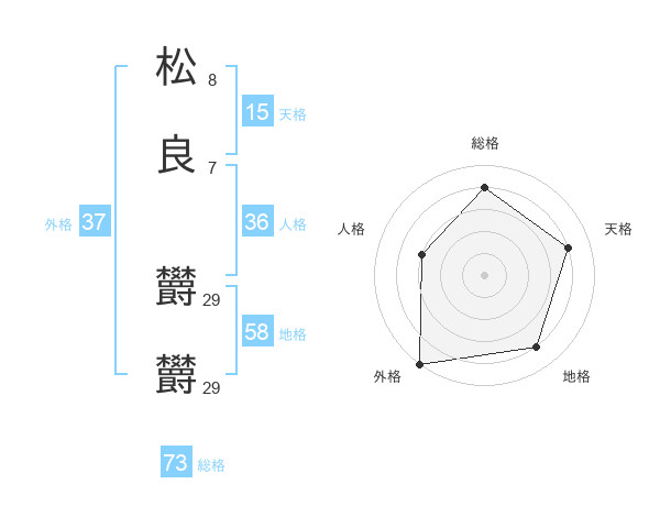松良 欝欝さんの総格は73画の4点!