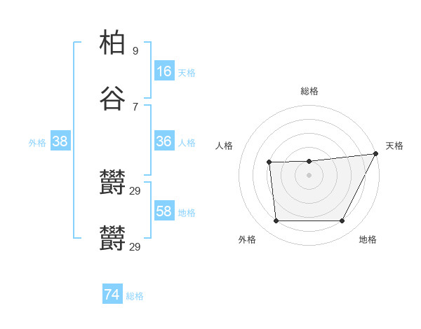 柏谷 欝欝さんの総格は74画の1点!