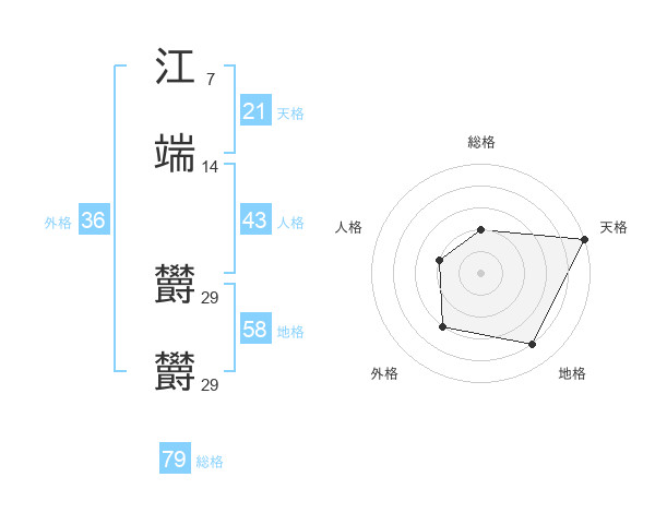 江端 欝欝さんの総格は79画の2点!