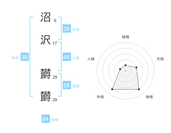 沼沢 欝欝さんを姓名の画数から五運を鑑定