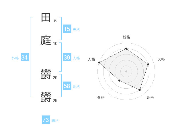 田庭 欝欝さんを姓名の画数から五運を鑑定