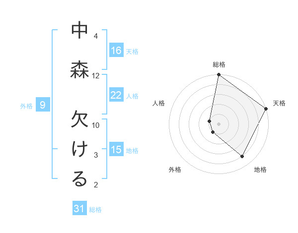 中森 欠けるさんを姓名の画数から五運を鑑定