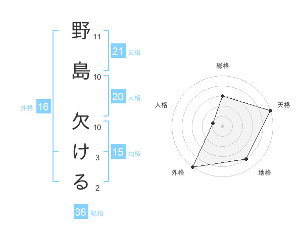 野島 欠けるさんの総格は36画の3点!