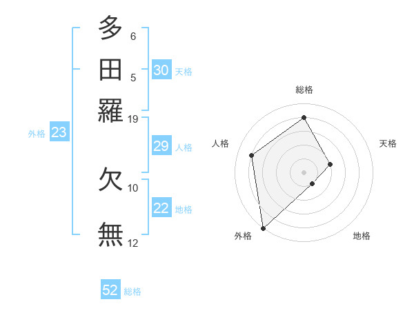 多田羅 欠無さんを姓名の画数から五運を鑑定
