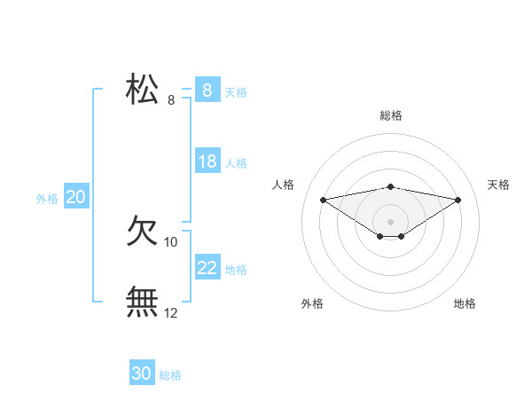 松 欠無さんの総格は30画の2点!