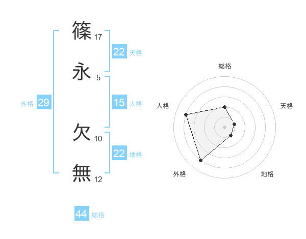 篠永 欠無さんを姓名の画数から五運を鑑定
