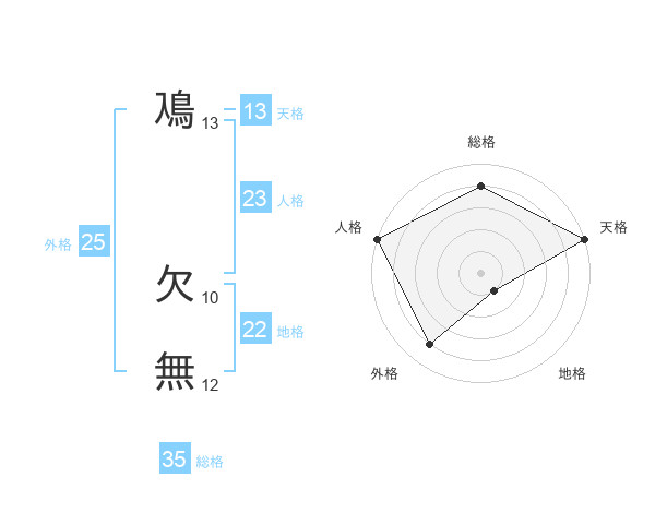 鳰 欠無さんを姓名の画数から五運を鑑定