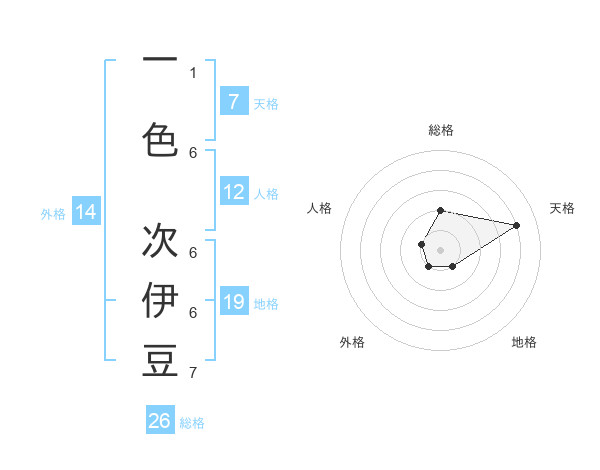 一色 次伊豆さんを姓名の画数から五運を鑑定