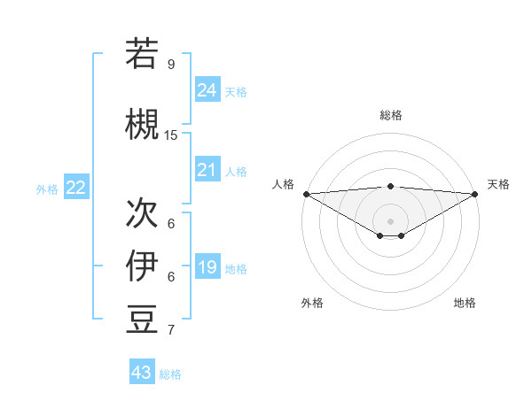 若槻 次伊豆さんを姓名の画数から五運を鑑定