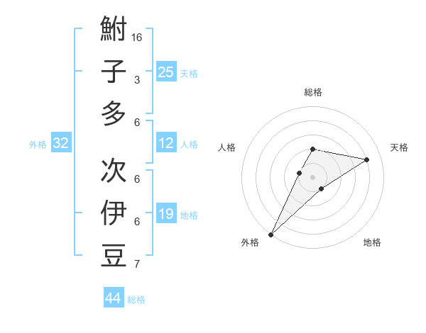 鮒子多 次伊豆さんを姓名の画数から五運を鑑定