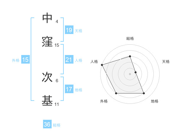 中窪 次基さんの地格は17画の4点!