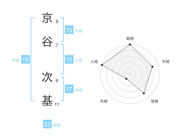 京谷 次基さんの天格は15画の4点!