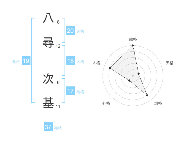 八尋 次基さんの外格は19画の1点!