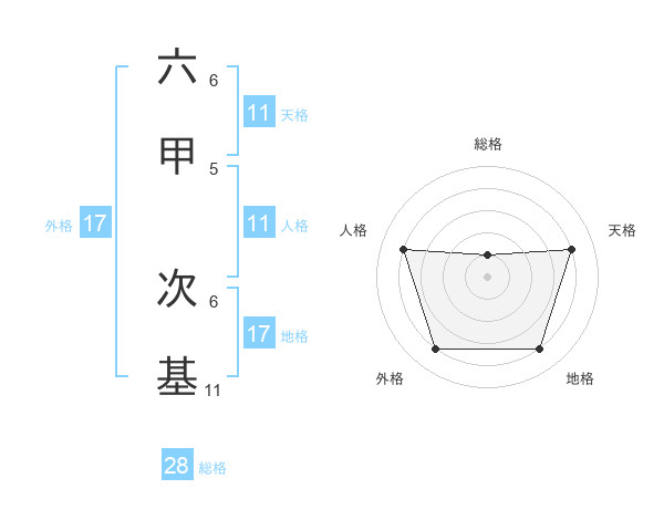六甲 次基さんの外格は17画の4点!