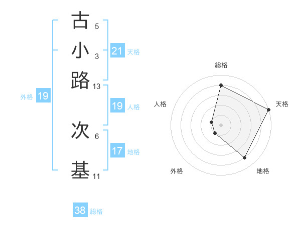 古小路 次基さんの総格は38画の4点!