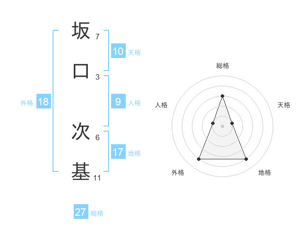 坂口 次基さんの総格は27画の3点!