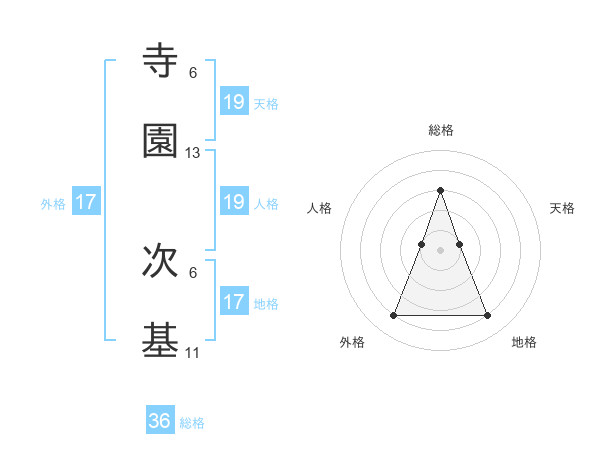 寺園 次基さんの地格は17画の4点!