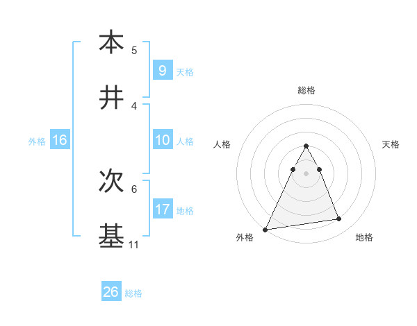 本井 次基さんの地格は17画の4点!