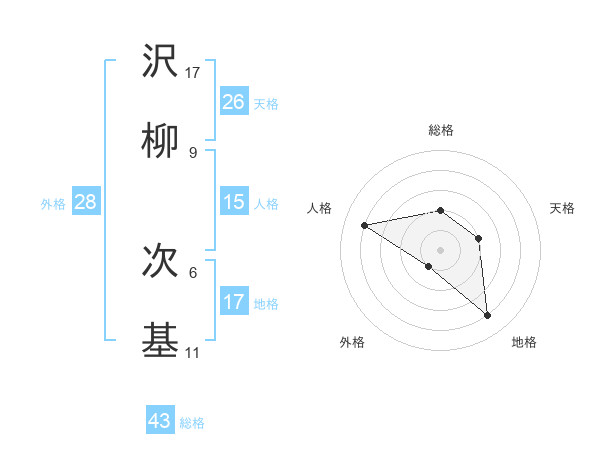 沢柳 次基さんを姓名の画数から五運を鑑定