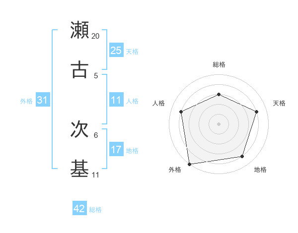 瀬古 次基さんの地格は17画の4点!